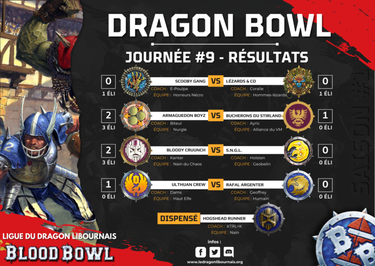 Voici les résultats des  8e et 9e Journée de la Dragon Bowl !!!!